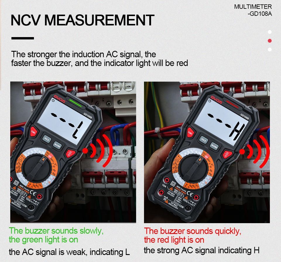 Multimetr GVDA je profesionální multimetr, který může měřit střídavé a stejnosměrné napětí, střídavý a stejnosměrný proud, odpor, kapacitu, kontinuitu, diodu, NCV atd.; Je to nejlepší volba pro profesionálního elektrikáře, inženýra, elektronického nadšence nebo rodinné použití.